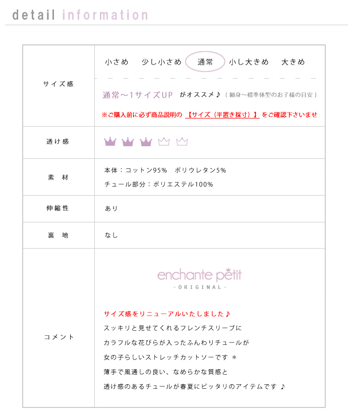 Enchante Petit深知媽媽們對童裝最在意的部份,其實就是寶貝穿來,對肌膚;或說身體感受究竟是如何,所以在每個商品介紹頁面,他們都製作了簡單易懂,卻又不失細緻詳盡的解說圖表,下圖就是很好的範例: