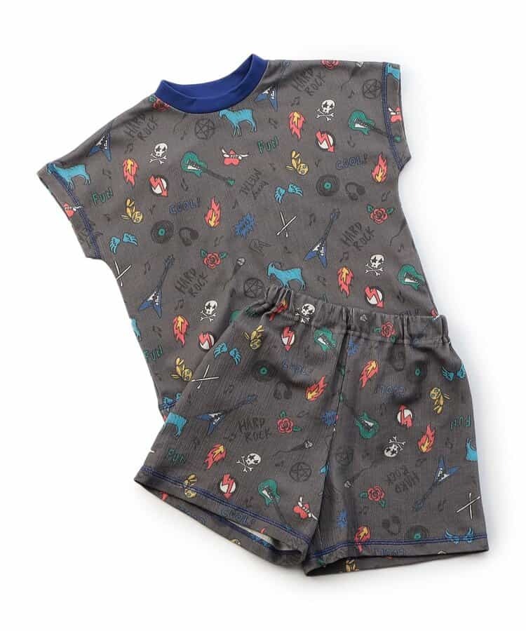 日本BREEZE 可愛搖滾圖樣 純棉居家服套裝 (炭灰色120-130) L358035