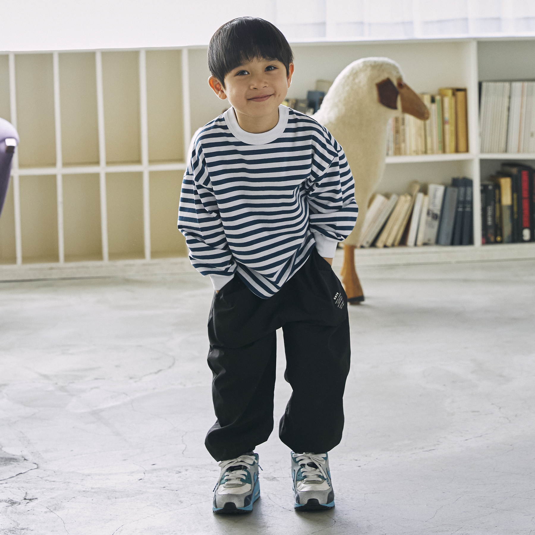 日本 GENERATOR CASUAL 條紋 天竺棉長袖上衣 (藍色,130-140) 915405