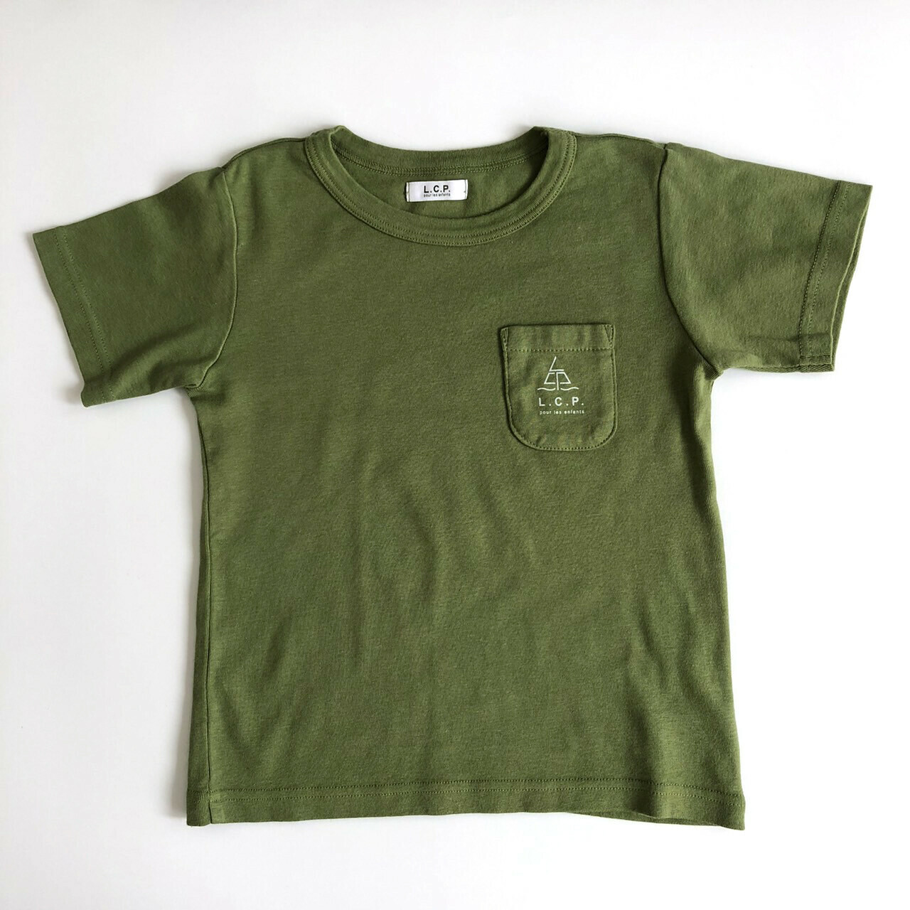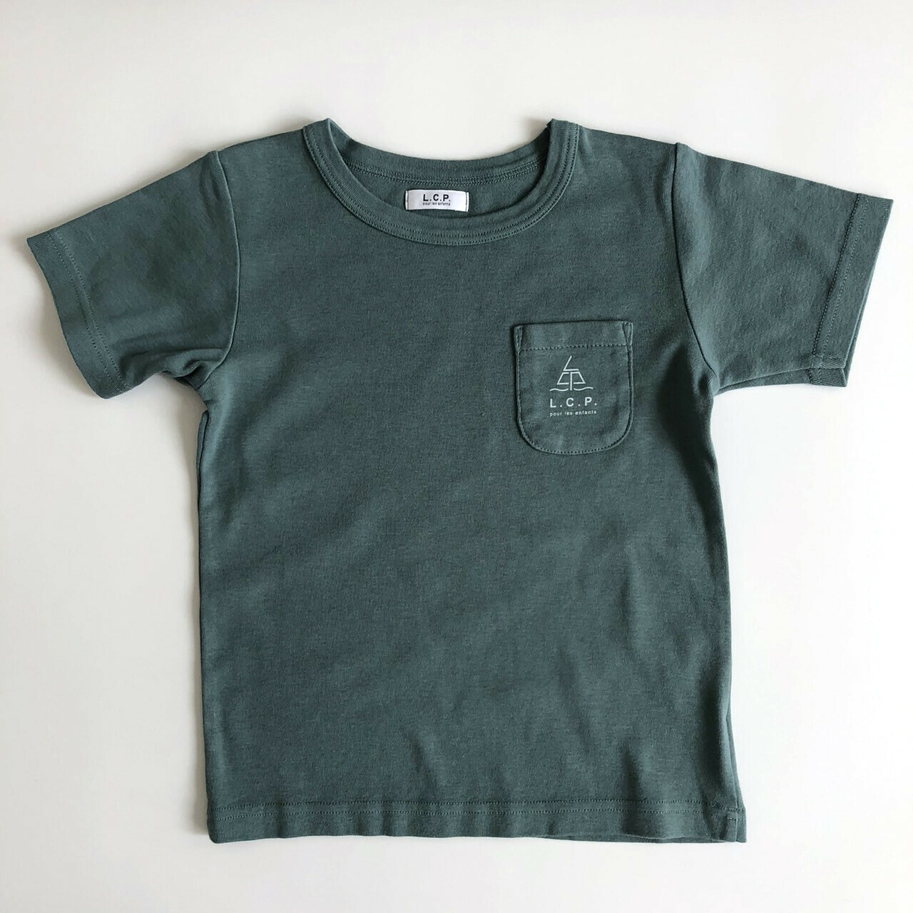 日本L.copeck 水手口袋 純色系 天竺棉短袖上衣 (軍綠色,150) LCP0002