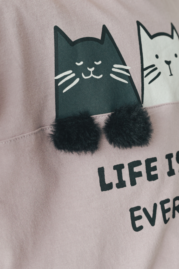 - 內容物:天竺棉長袖上衣*1、長袖衛衣*1、無領毛咪尾巴夾克*1、基本百搭縮口長褲*1、棉布提袋*1