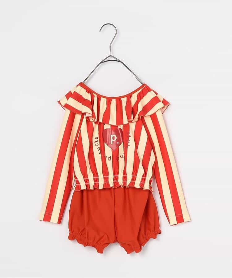 日本p.premier 女孩 繽紛色款 抗UV 泳裝套裝 (紅色,110) P276015