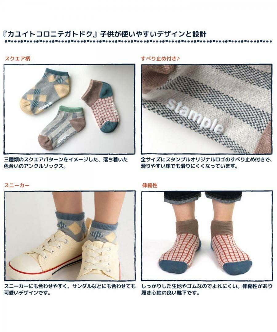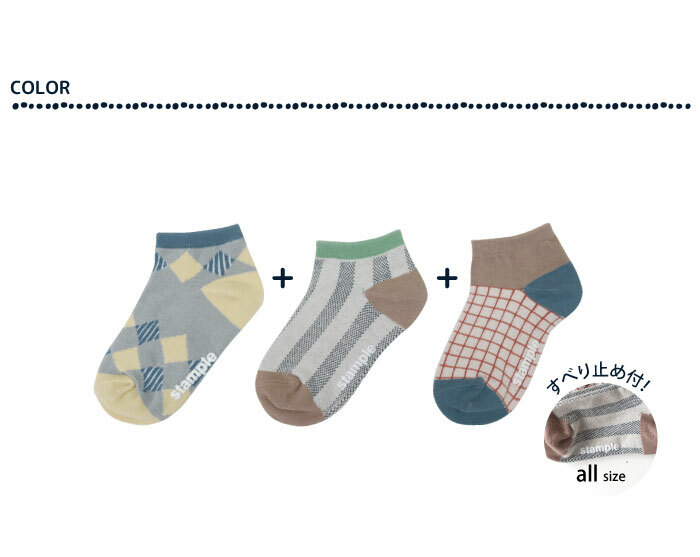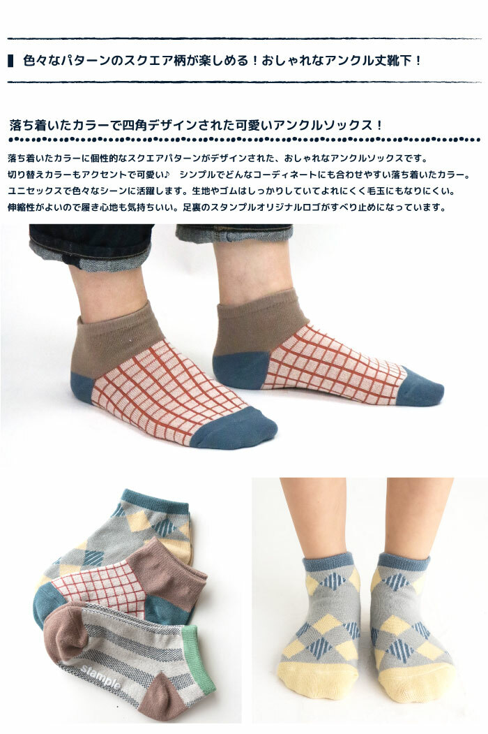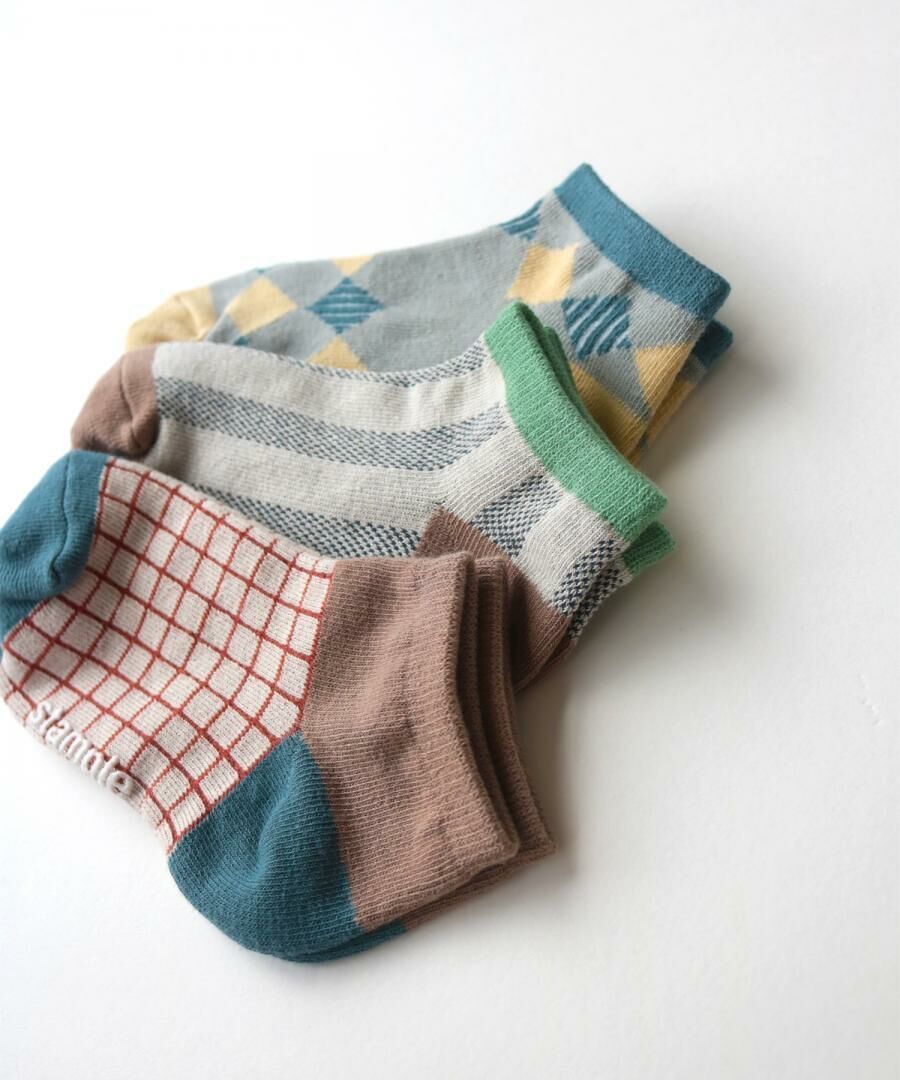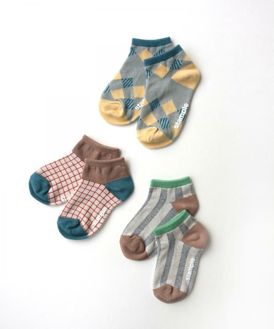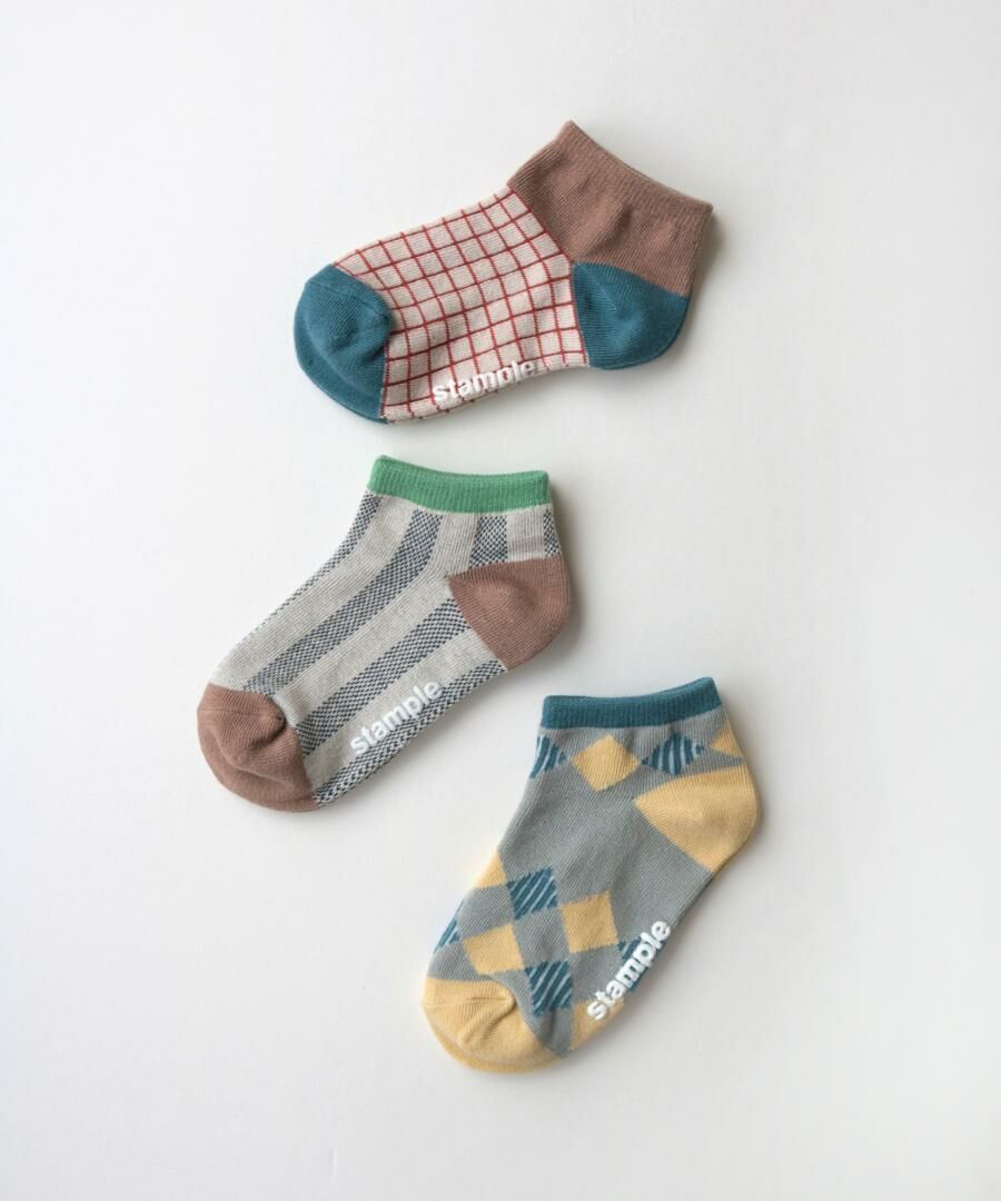 日本 stample 方塊圖樣 腳踝短襪 (3雙1組) 72971